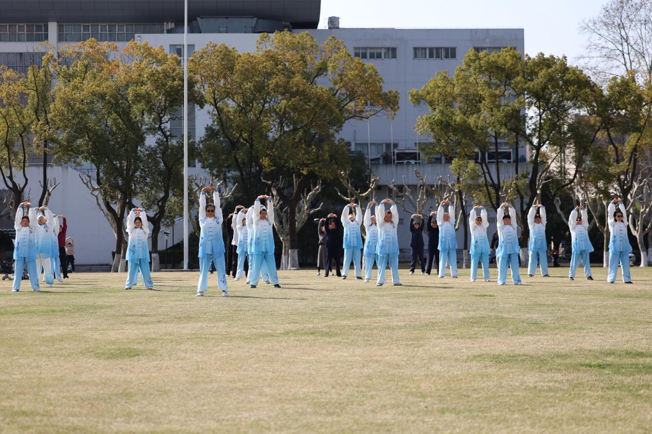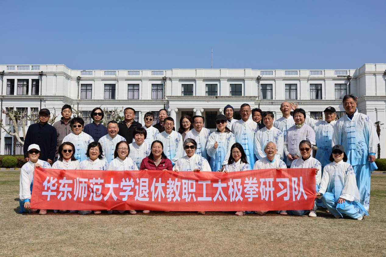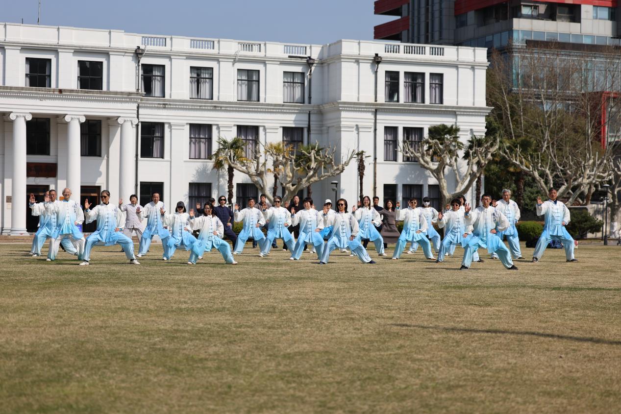 为迎接2026年国际太极日,响应全民健身号召,弘扬中华优秀传统武术文化,2026年3月21日上午,华东师范大学退休教职工太极拳研习队在普陀校区举办 “拳承古韵,健康太极” 主题活动。校老龄办副主任李海芬出席,30余位退休教职工参加活动。