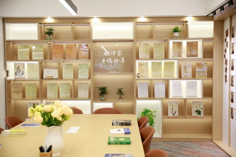 丽娃河畔的翻译家成果陈列室位于闵行校区外语楼一楼。丽娃河畔的翻译家成果陈列室展览由“文起丽娃河”“拾香译名篇”“语筑共同体”三部分组成,系统梳理了不同时代翻译家们的翻译思想和翻译成果,展品包括由中国近现代新闻出版博物馆提供的戈宝权手稿以及部分相关书信复印件等,立体化呈现了丽娃河畔翻译家群体薪火相传的精神脉络。