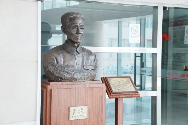 周抗雕像位于闵行校区法商北楼一楼大厅。周抗(1914—2002) 华东师范大学首任党委书记,著名哲学家和理论教育家。曾任中学美术教师,抗日军政大学宣传队长,上海社会科学院哲学研究所党委书记、所长、研究员,上海市委党校教研室主任,被誉为“从抗大走来的哲学家”。参与“实践是检验真理的唯一标准”大讨论和全民巡讲,为思想解放和拨乱反正发挥了重要作用。