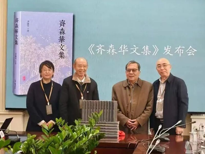 随后,复旦大学中文系教授黄霖、上海戏剧学院戏文系教授叶长海、韬奋基金会副理事长阚宁辉、上海古籍出版社总编奚彤云共同为《齐森华文集》揭幕。