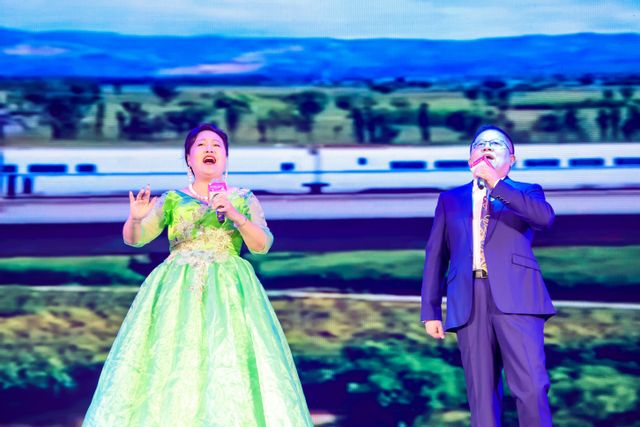 演出中,我校退休艺术团成为舞台上的亮眼力量。丽娃合唱队以饱满的热情、铿锵的歌声演绎经典抗战曲目《大刀进行曲》《保卫黄河》,熟悉的旋律瞬间将现场观众带回烽火连天的抗战岁月,激昂的节奏传递出中华民族不屈不挠的抗争精神,赢得阵阵掌声。我校退休教师曾红霞与上海海关学院退休教师钱明联袂献上的男女声二重唱《春天中国》,更作为整场演出的压轴节目登场,二人用深情的演唱描绘新时代中国的蓬勃生机,将演出氛围推向高潮。演出尾声,全体演员共同登台唱响《在灿烂阳光下》,最终在《没有共产党就没有新中国》的嘹亮歌声中圆满闭幕,红色旋律久久回荡在剧场内。